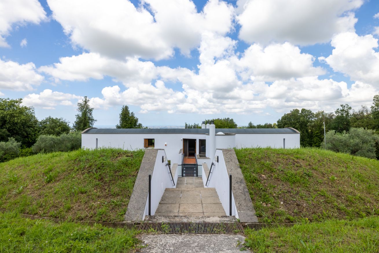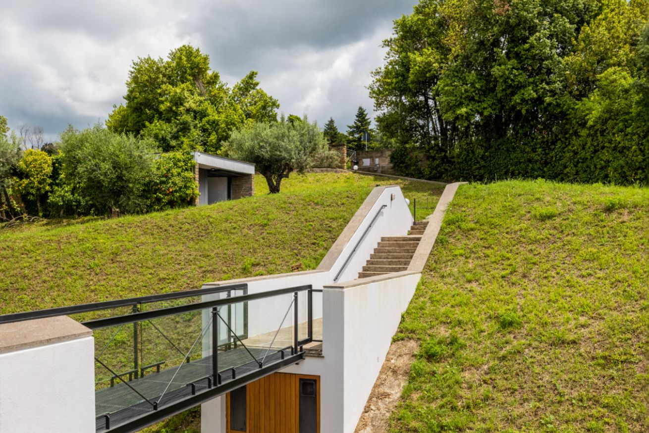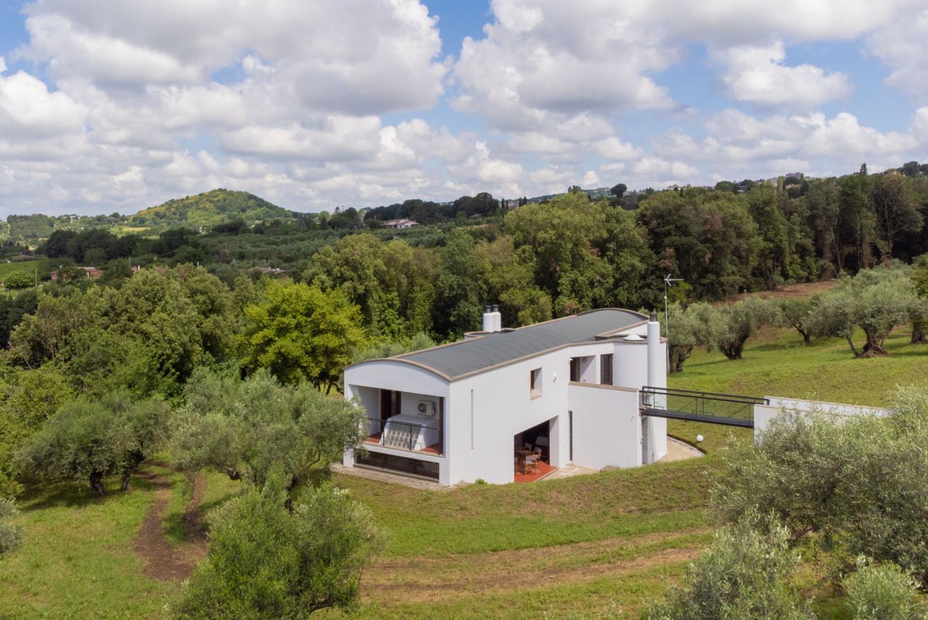 La residenza unifamiliare, progettata da Alfredo Lambertucci nel 1973 e costruita tra il 1975 e il 1976, è una casa di campagna creata per offrire un luogo al di fuori della città dove godere di momenti di tranquillità. Situata lungo la via Appia Vecchia, tra Genzano e Lanuvio, la sua costruzione ha richiesto particolare attenzione all'ambiente circostante, poiché l'architetto desiderava preservare il panorama della campagna e garantire una vista ininterrotta dell'orizzonte. Pertanto, la casa è stata costruita al di sotto del livello stradale, scavando nel terreno e creando un rapporto speciale con la natura e l'ambiente circostante.