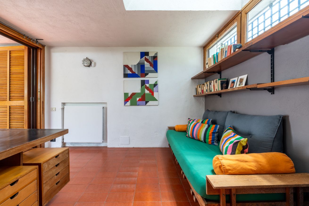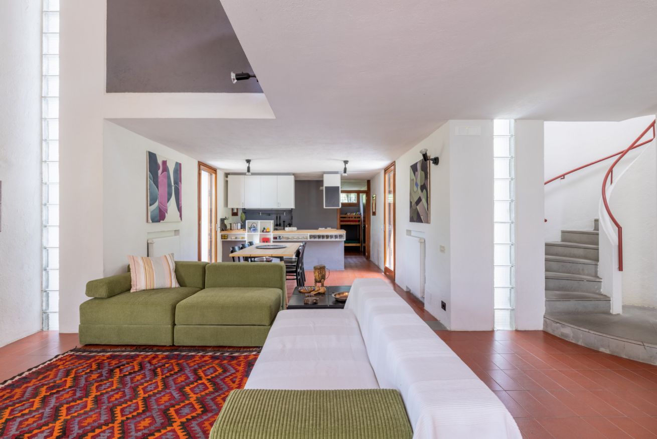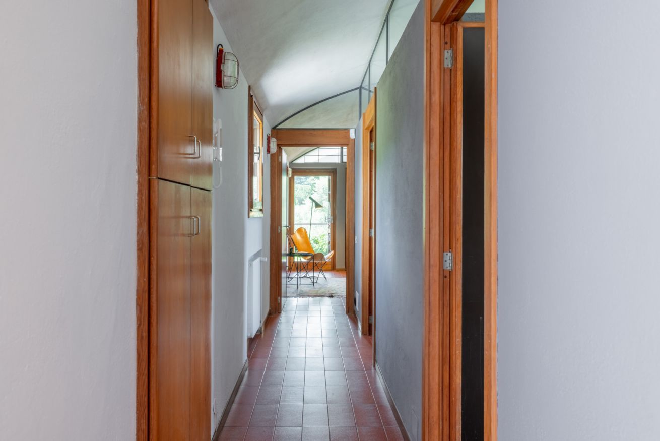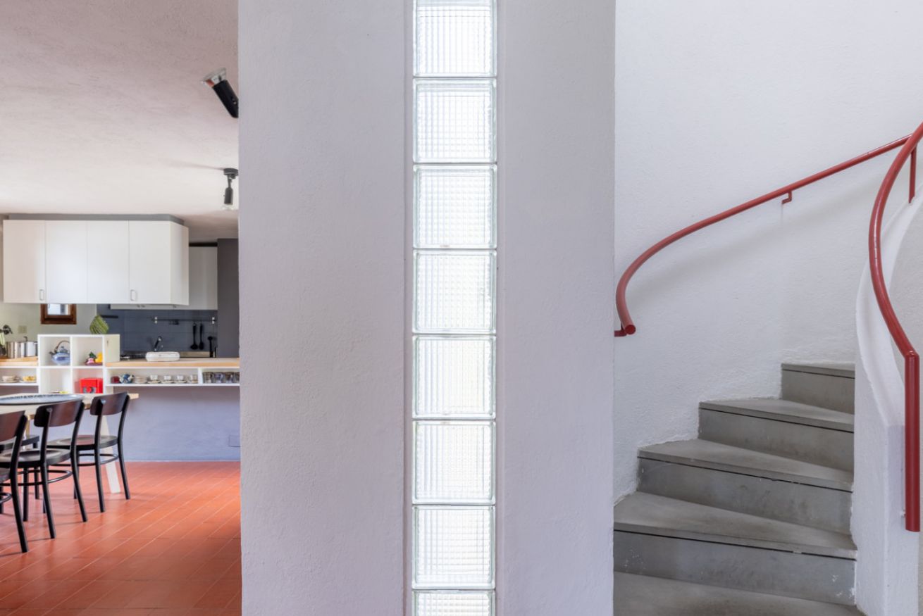 La continuità che si riscontra all'esterno si ritrova anche all'interno della casa. Al piano inferiore, questa continuità si manifesta nell'unione delle funzioni della zona giorno, mentre al piano superiore la continuità tra gli ambienti è garantita dall'inserimento di abbondante luce naturale attraverso finestre e sopraluce vetrati sulle pareti divisorie interne. La luce gioca un ruolo chiave nell'ambiente: la sua diffusione diretta e indiretta è stata studiata nei minimi dettagli, utilizzando ampie finestre quando necessario e elementi di vetrocemento nella muratura per trasmettere la luce tra le diverse stanze del piano superiore.