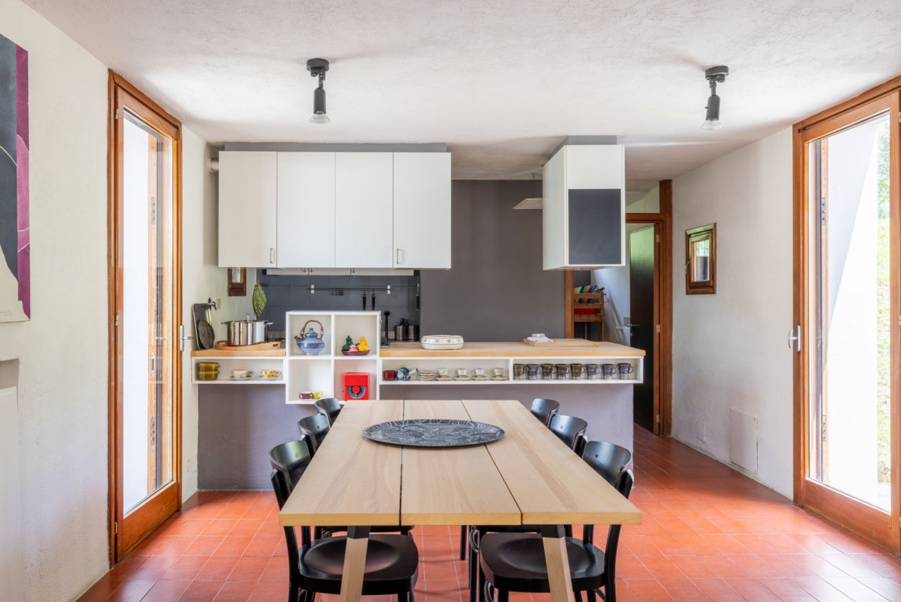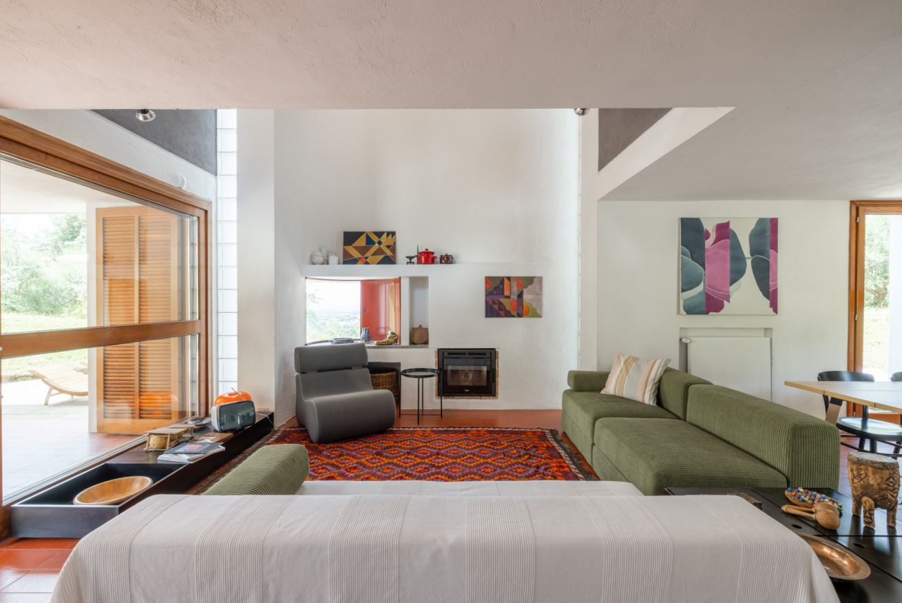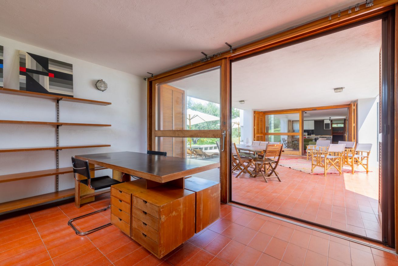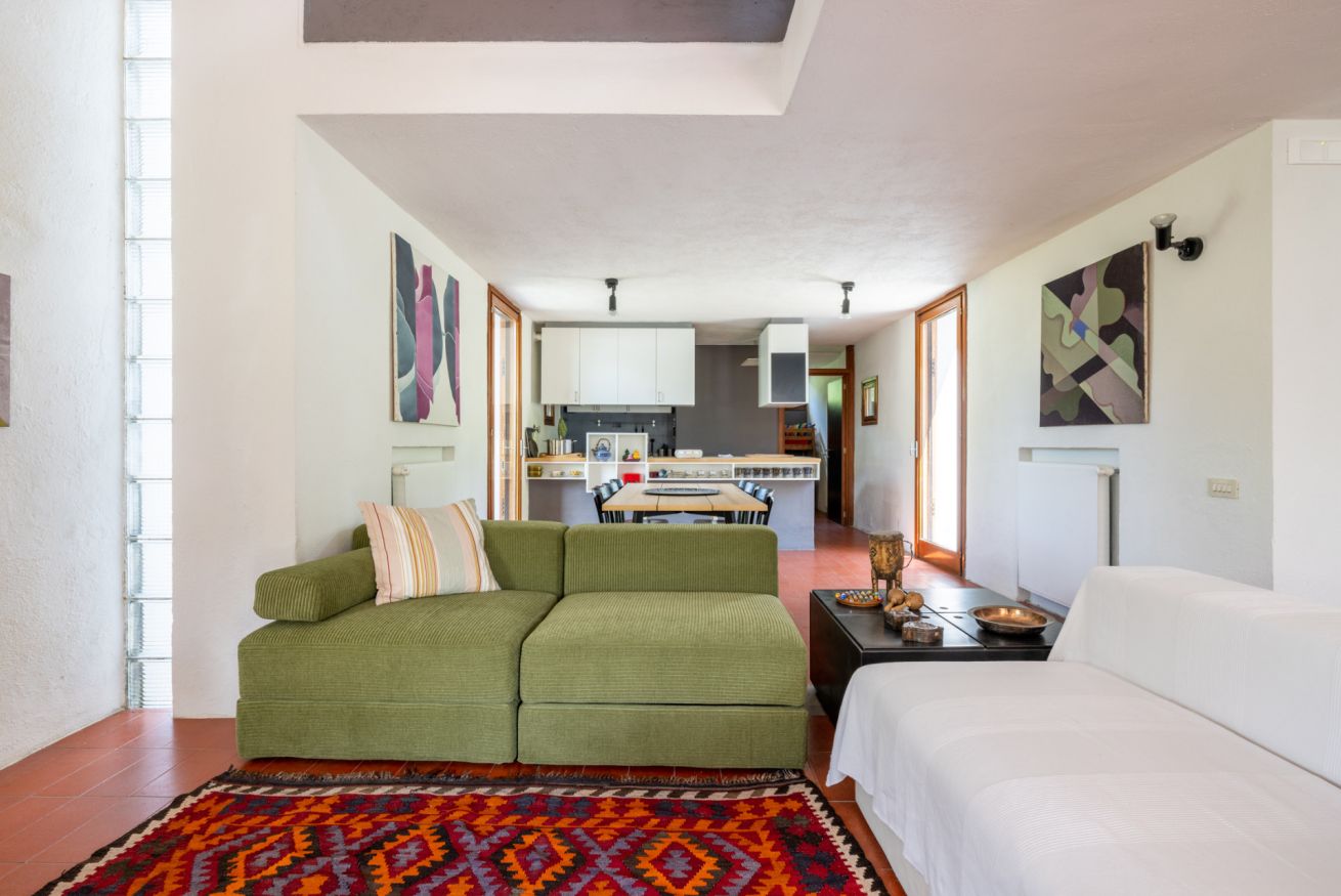 La continuità che si riscontra all'esterno si ritrova anche all'interno della casa. Al piano inferiore, questa continuità si manifesta nell'unione delle funzioni della zona giorno, mentre al piano superiore la continuità tra gli ambienti è garantita dall'inserimento di abbondante luce naturale attraverso finestre e sopraluce vetrati sulle pareti divisorie interne. La luce gioca un ruolo chiave nell'ambiente: la sua diffusione diretta e indiretta è stata studiata nei minimi dettagli, utilizzando ampie finestre quando necessario e elementi di vetrocemento nella muratura per trasmettere la luce tra le diverse stanze del piano superiore.