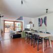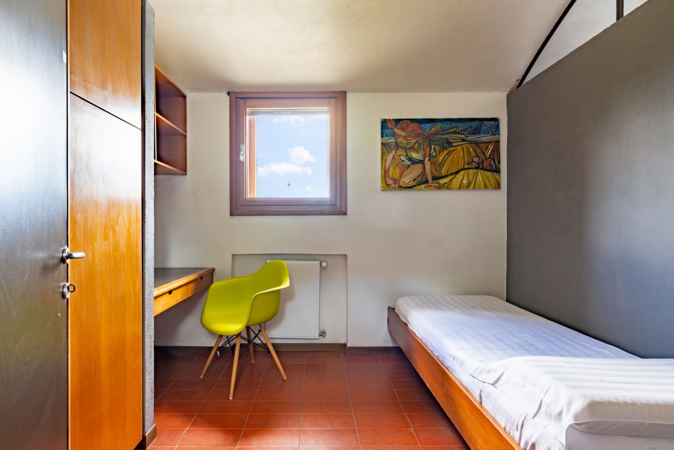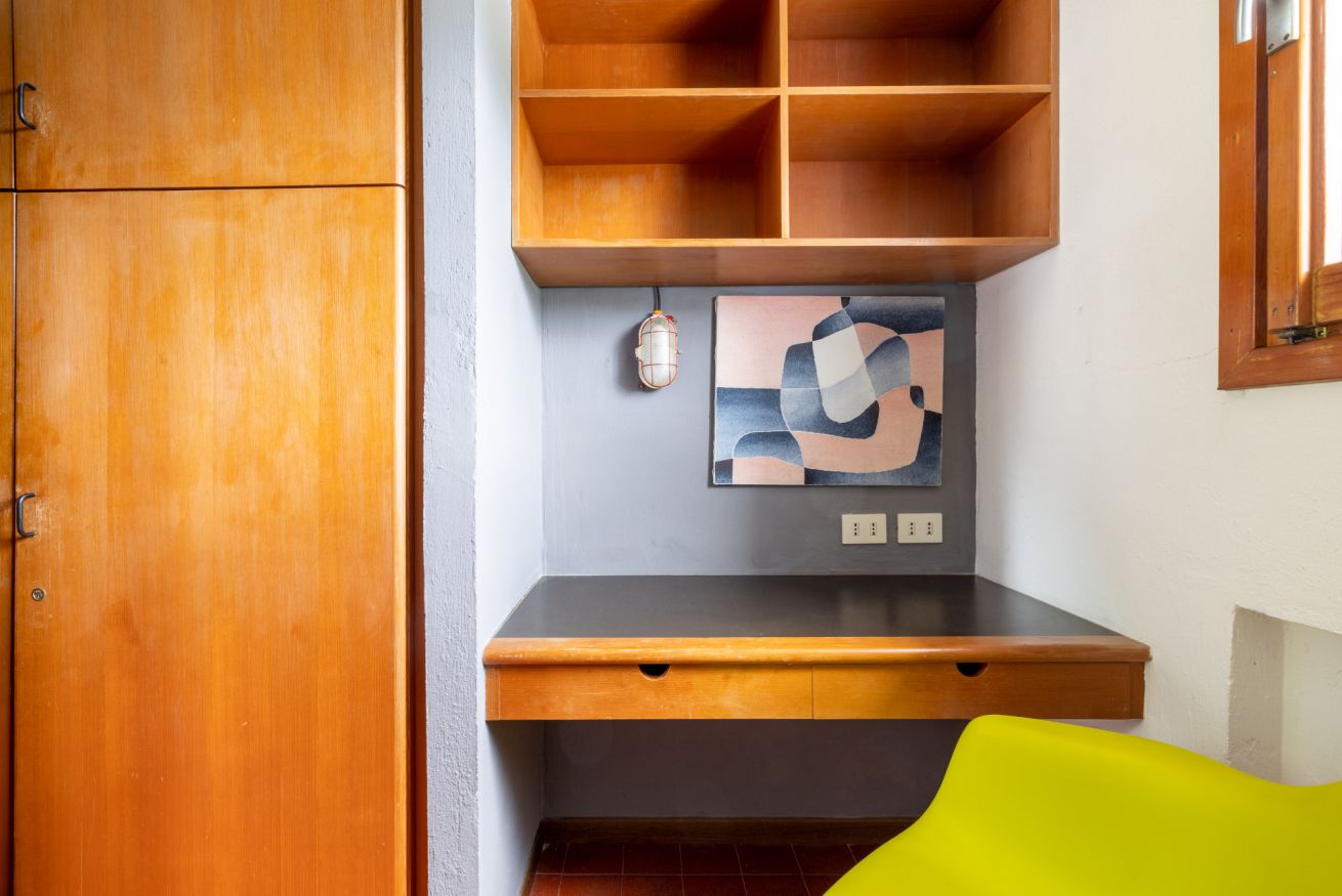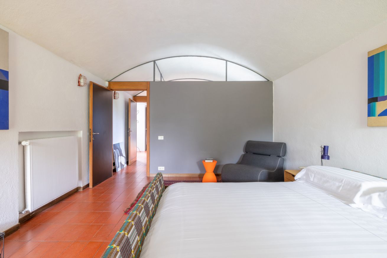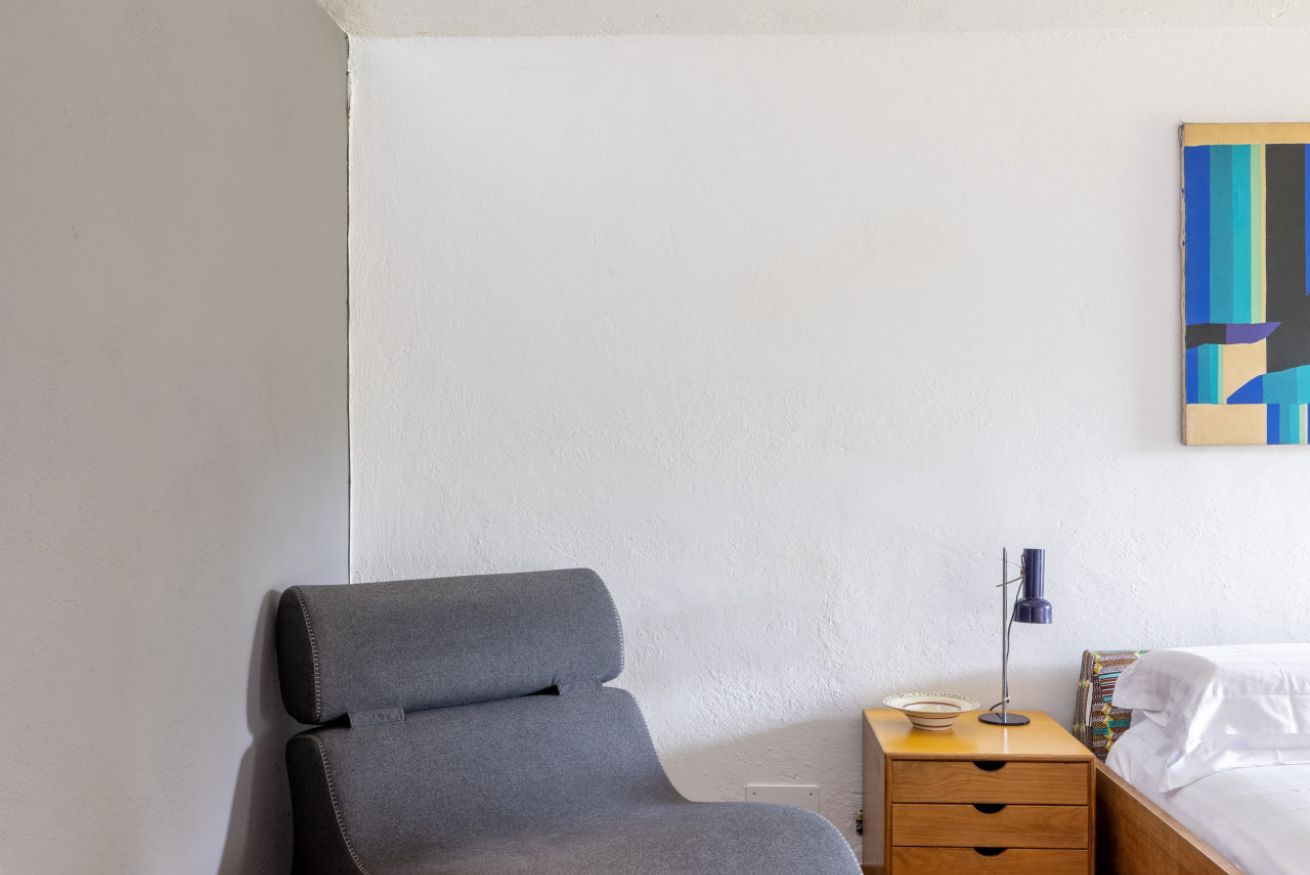 La continuità che si riscontra all'esterno si ritrova anche all'interno della casa. Al piano inferiore, questa continuità si manifesta nell'unione delle funzioni della zona giorno, mentre al piano superiore la continuità tra gli ambienti è garantita dall'inserimento di abbondante luce naturale attraverso finestre e sopraluce vetrati sulle pareti divisorie interne. La luce gioca un ruolo chiave nell'ambiente: la sua diffusione diretta e indiretta è stata studiata nei minimi dettagli, utilizzando ampie finestre quando necessario e elementi di vetrocemento nella muratura per trasmettere la luce tra le diverse stanze del piano superiore.