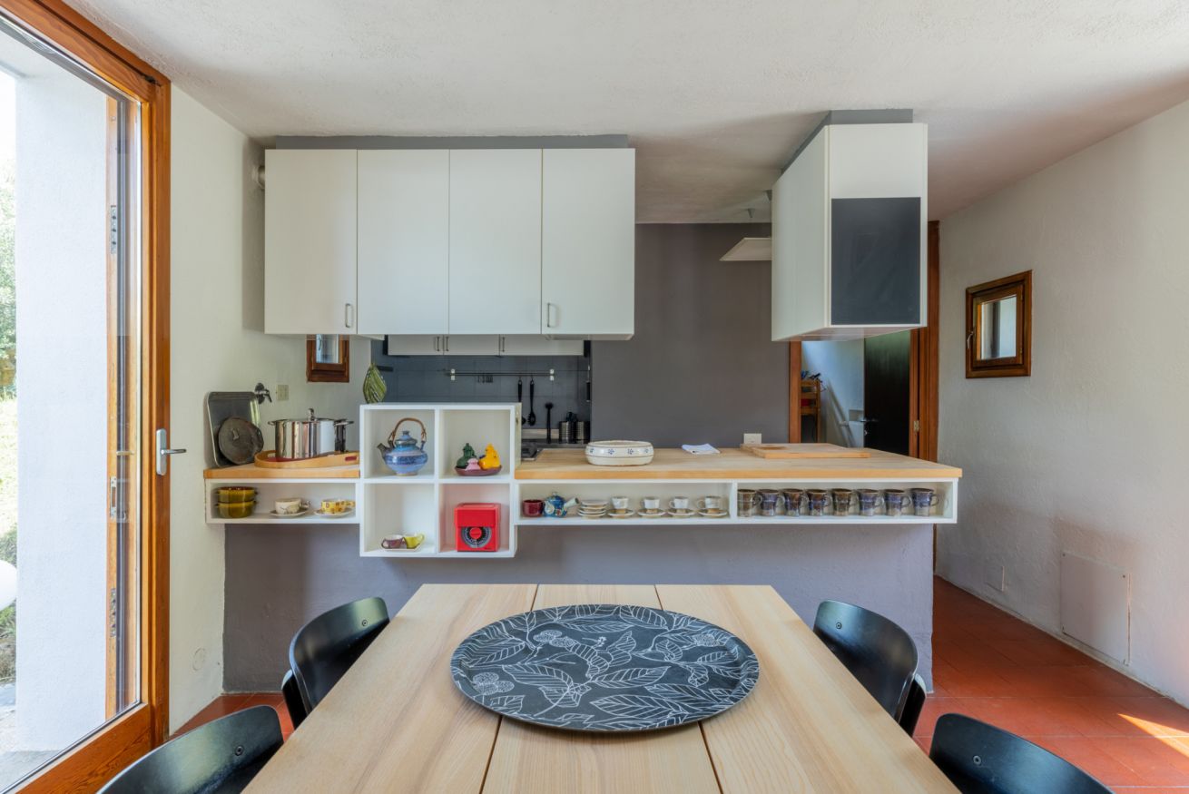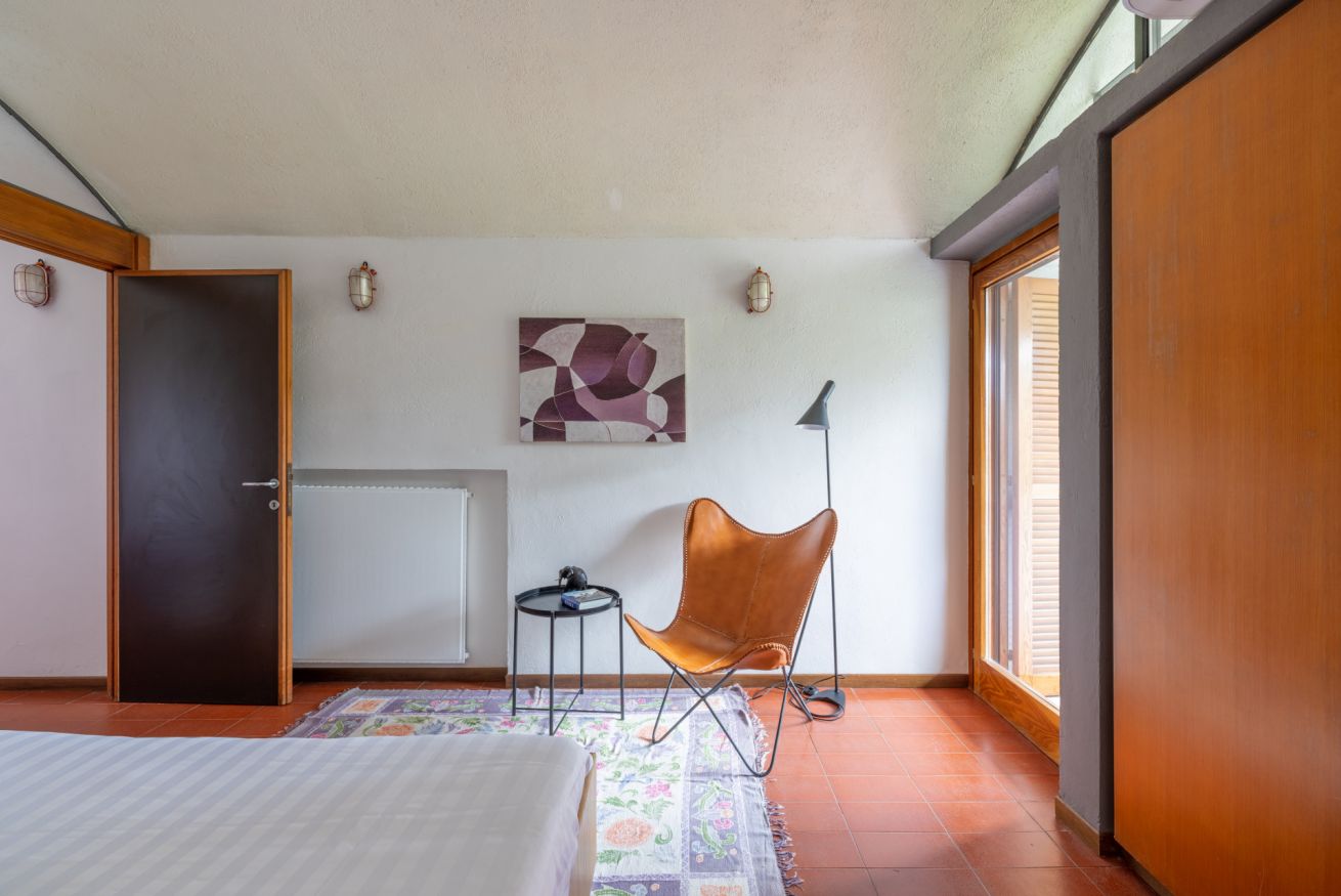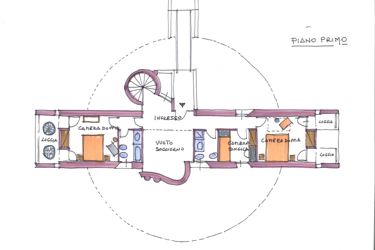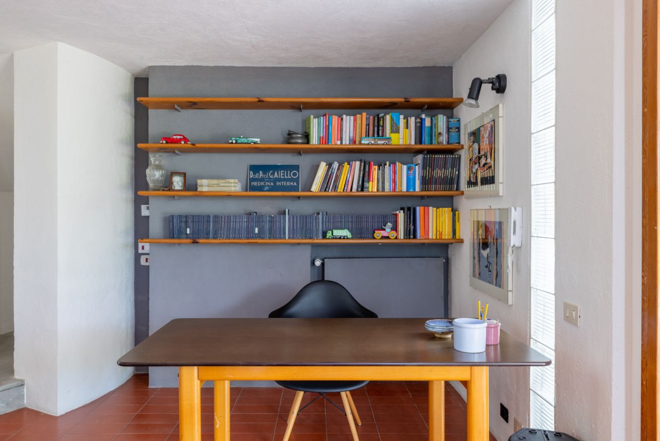 La villa si sviluppa su due piani, quello superiore dedicato alla zona notte, quello inferiore alla zona giorno.