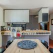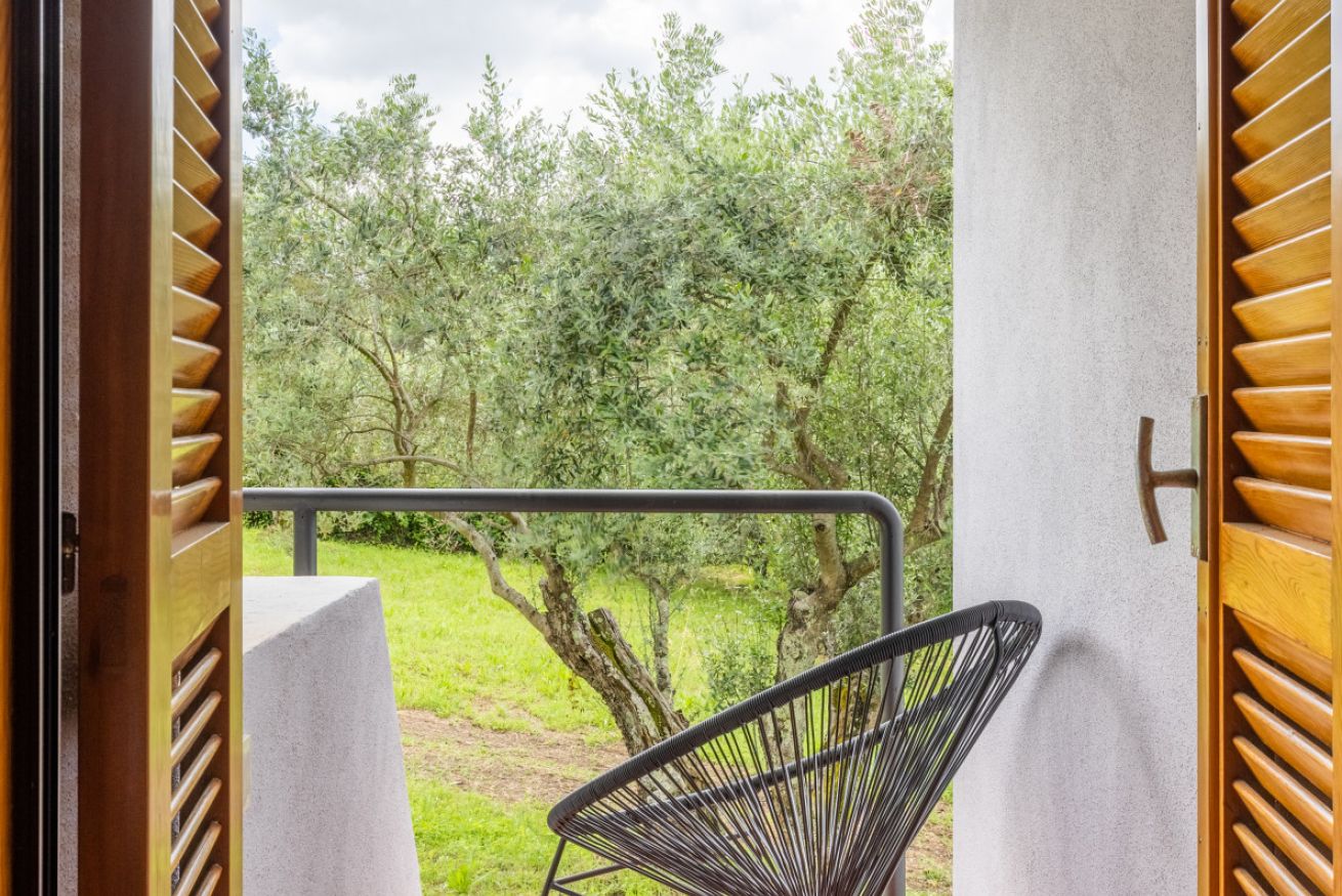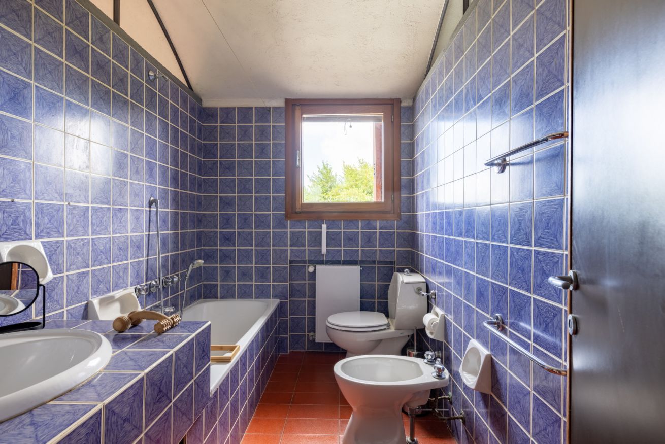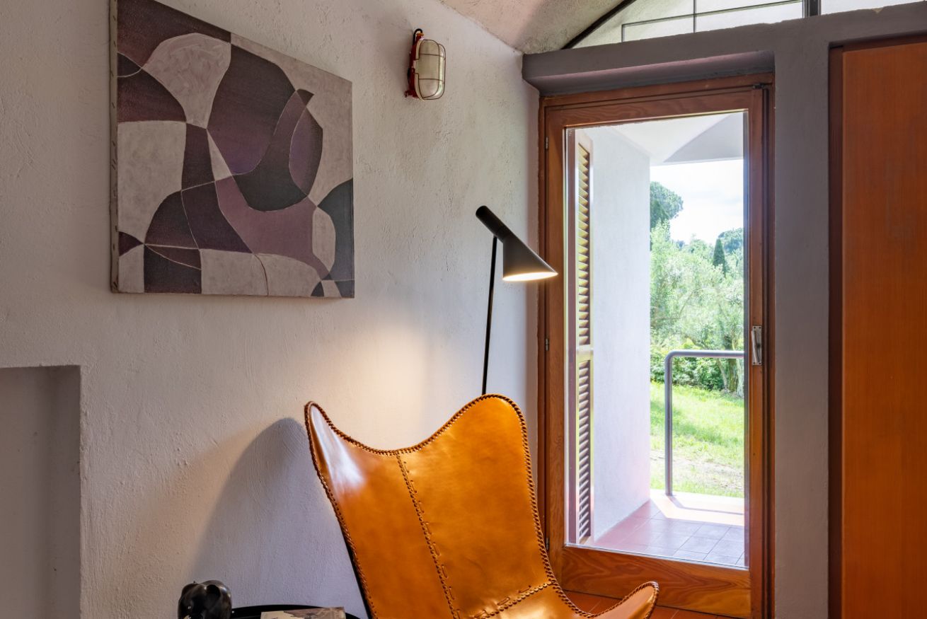 La villa si sviluppa su due piani, quello superiore dedicato alla zona notte, quello inferiore alla zona giorno.