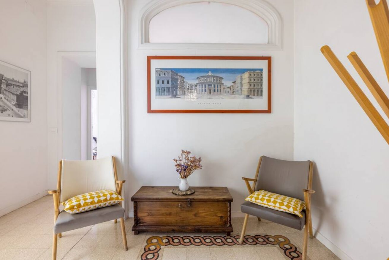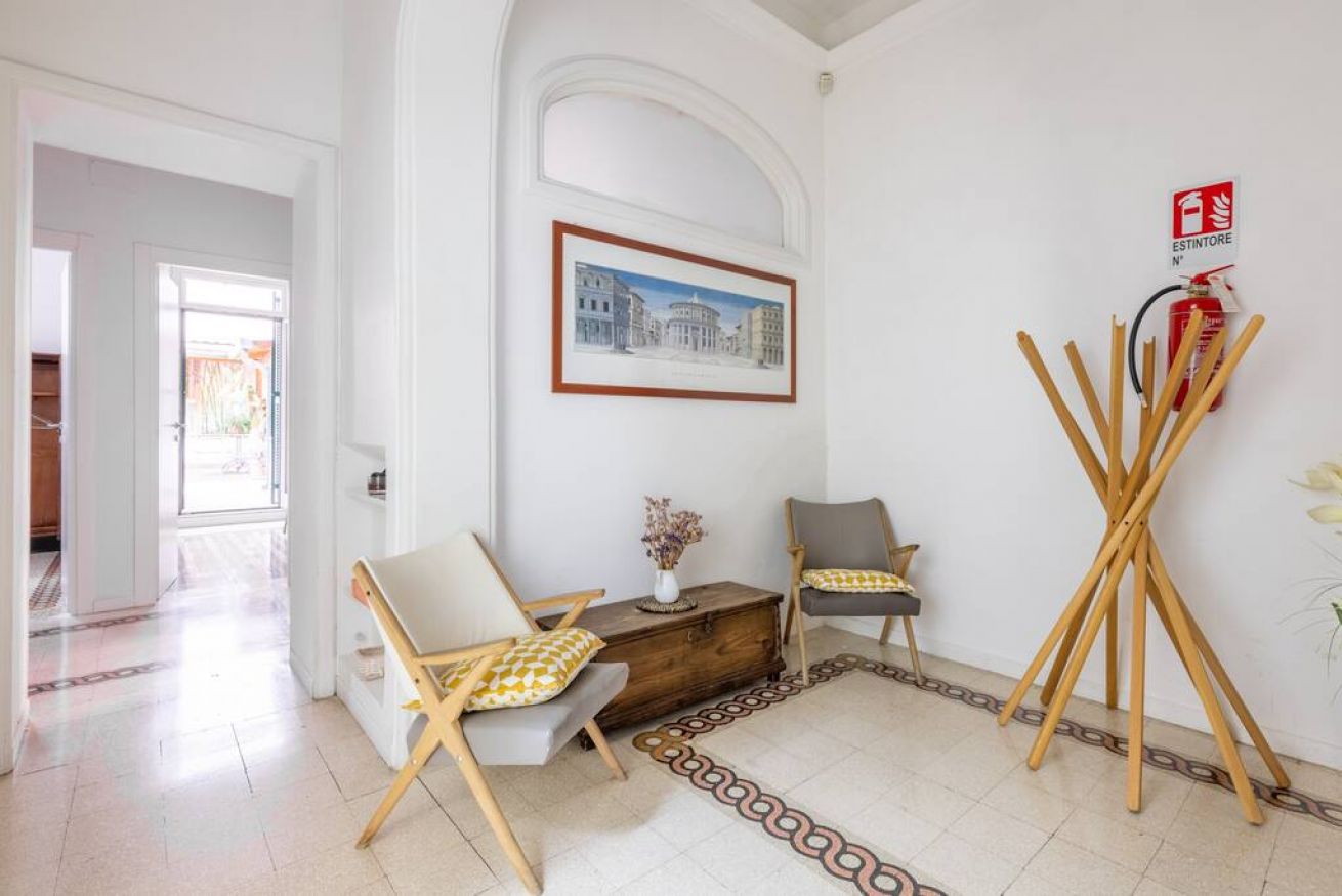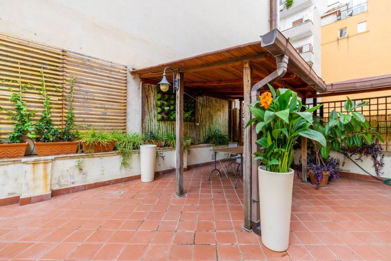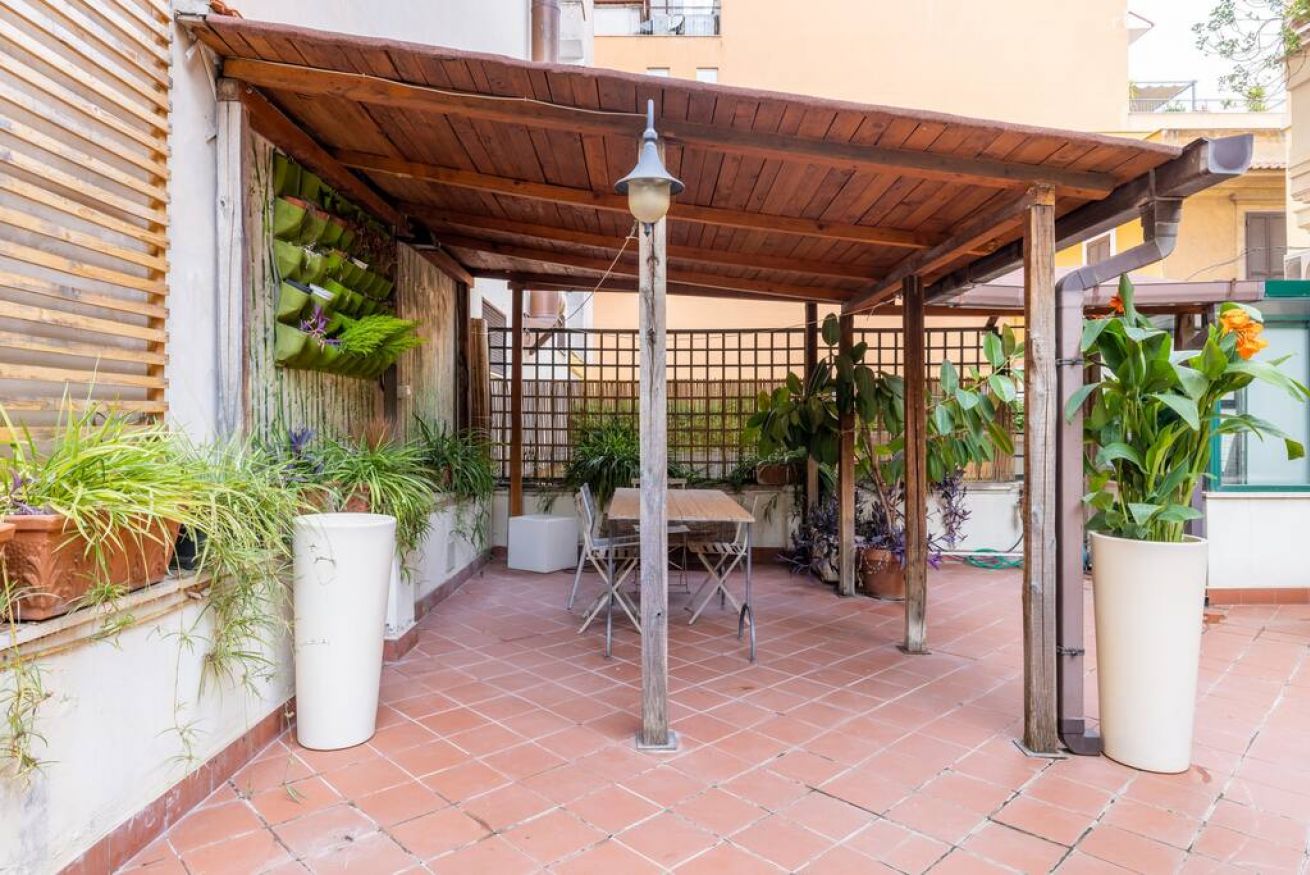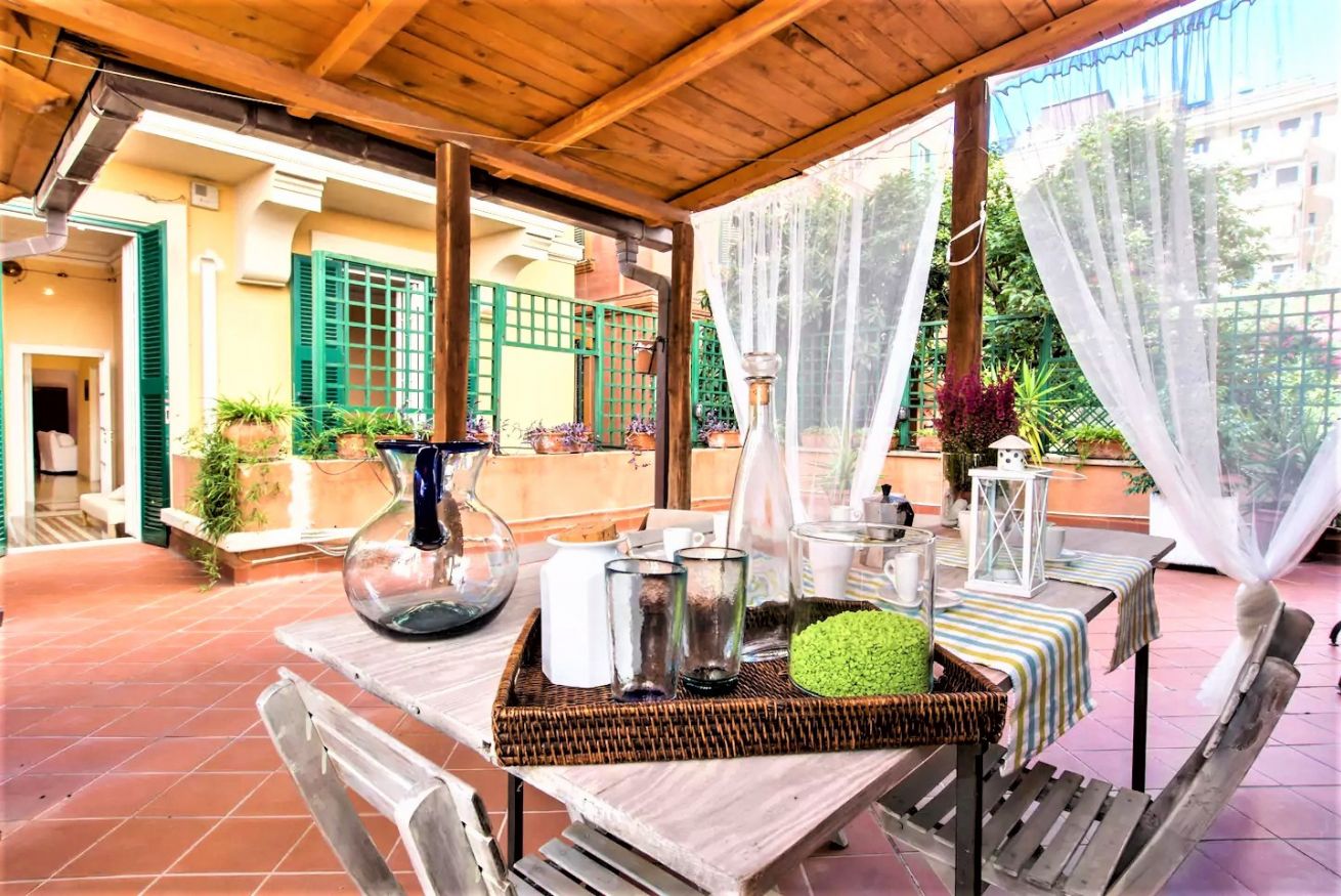 Nel silenzio magico dell'antica Roma elegante ampio appartamento vicino alla metropolitana e al Colosseo. In una villetta primi '900, due confortevoli camere, un soggiorno e un patio per indimenticabili cene romantiche vi attendono per una vacanza da sogno.