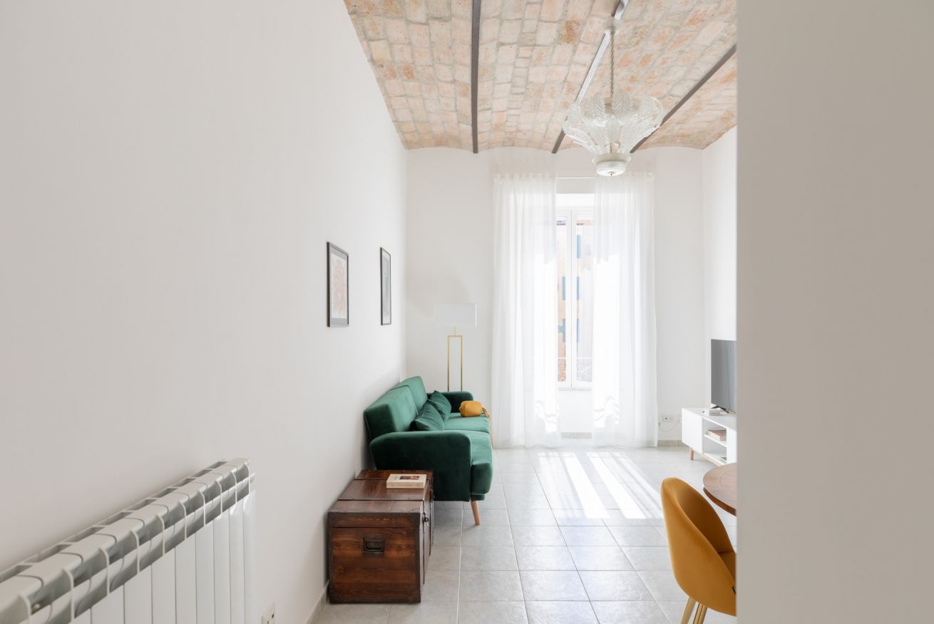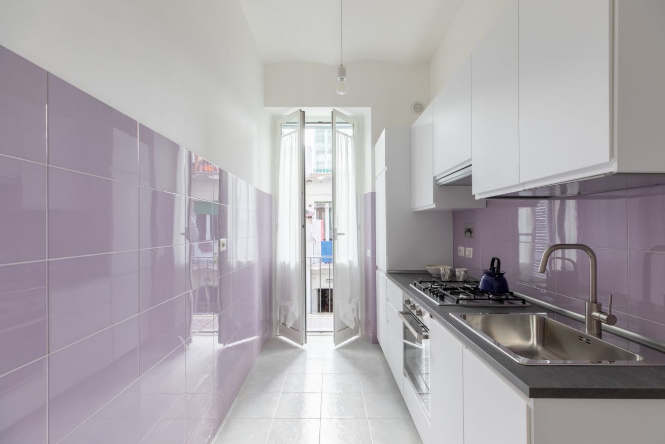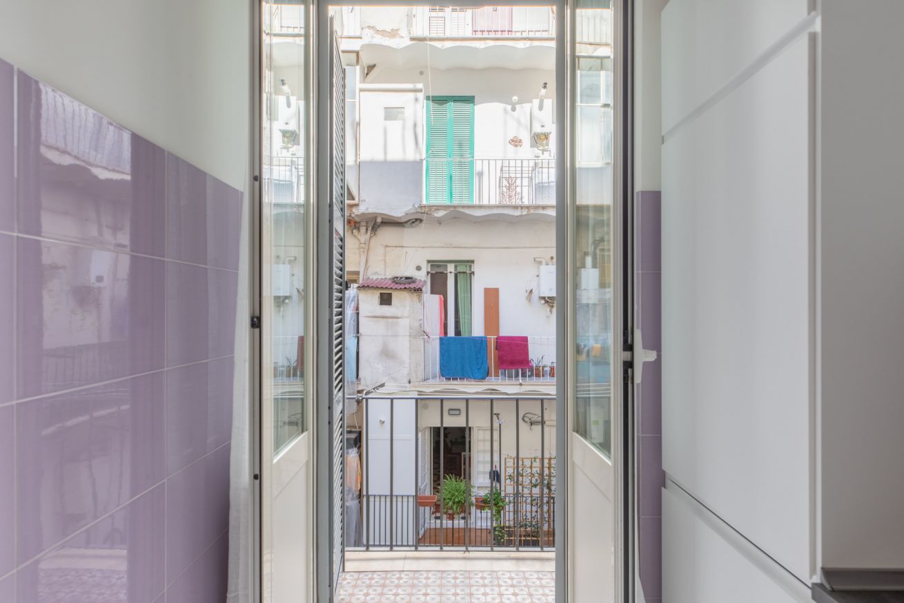 L'appartamento è in un edificio storico tipico del quartiere, con facciate colorate e un balconcino interno in ferro battuto. Entrando, ci si trova in un corridoio che porta ai diversi ambienti la casa è illuminata da ampie finestre che lasciano entrare la luce naturale.