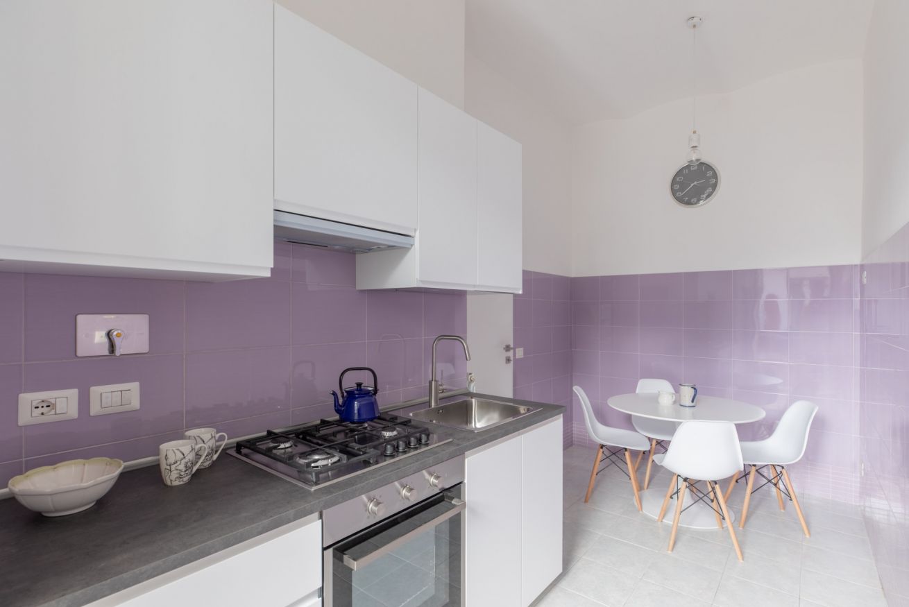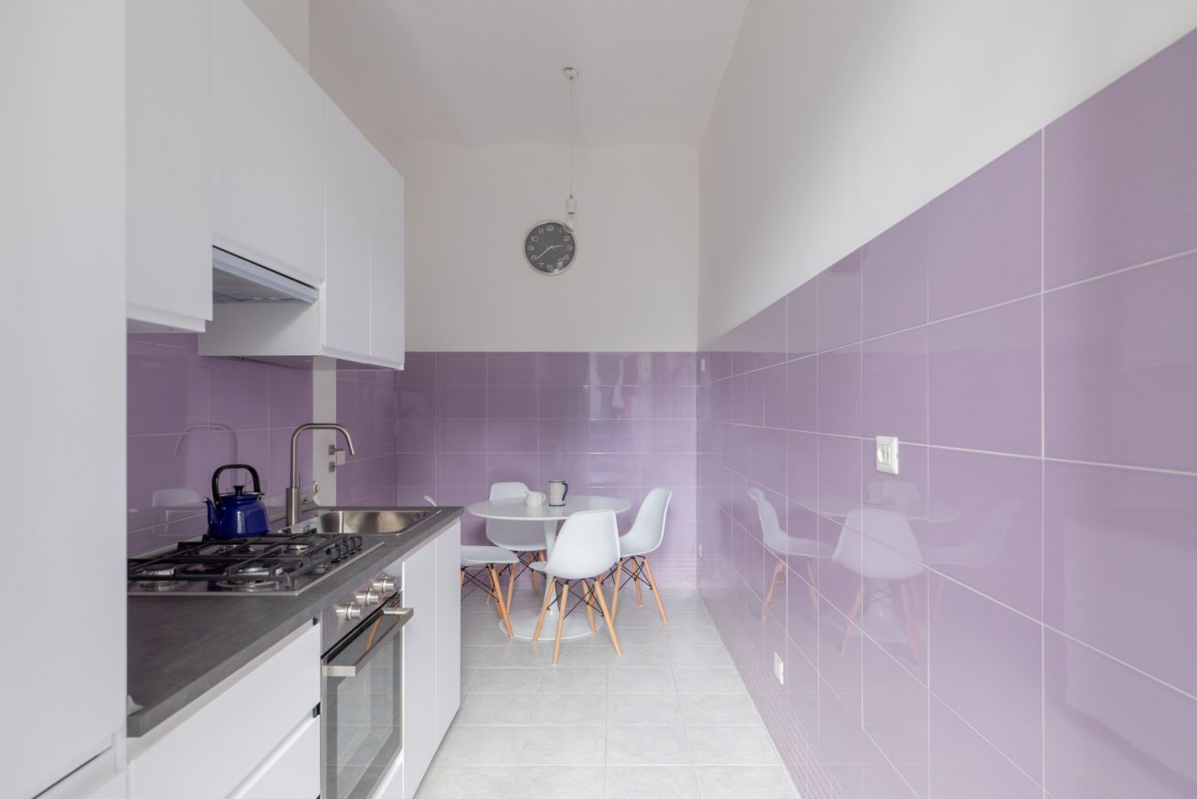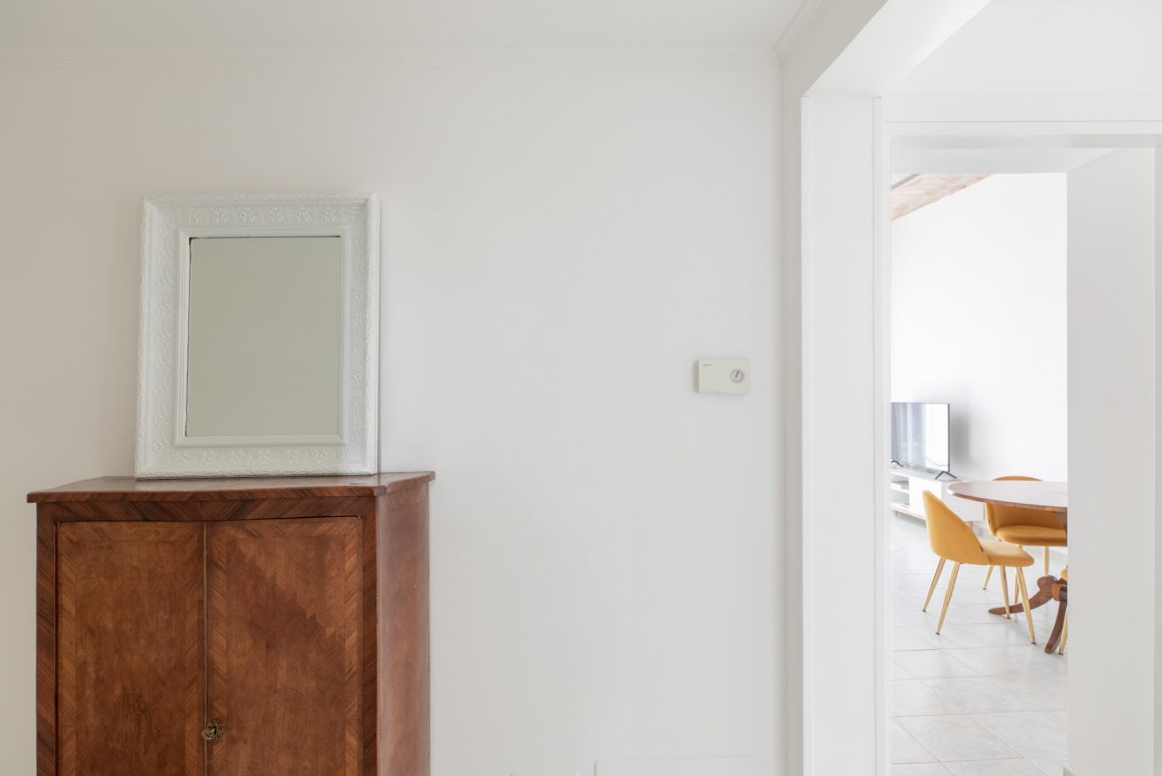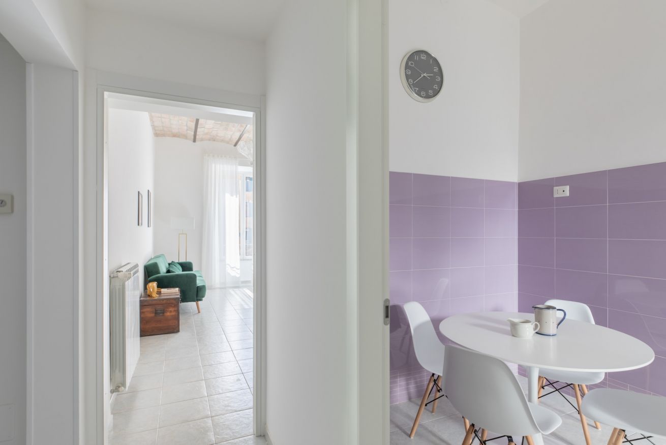 L'appartamento è in un edificio storico tipico del quartiere, con facciate colorate e un balconcino interno in ferro battuto. Entrando, ci si trova in un corridoio che porta ai diversi ambienti la casa è illuminata da ampie finestre che lasciano entrare la luce naturale.